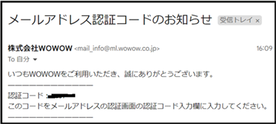 すると、受信トレイに以下のような「認証コード」が記載されたメールが届きます。