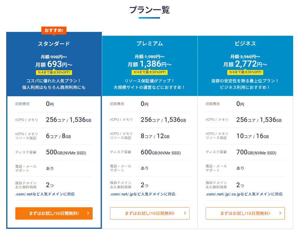具体的な料金については、エックスサーバーの公式サイトで提供されているプランごとの料金表を確認することができます。契約プランやオプションサービス(独自ドメインの取得など)を追加している場合、その分の料金も更新時に加算されるので注意が必要です。